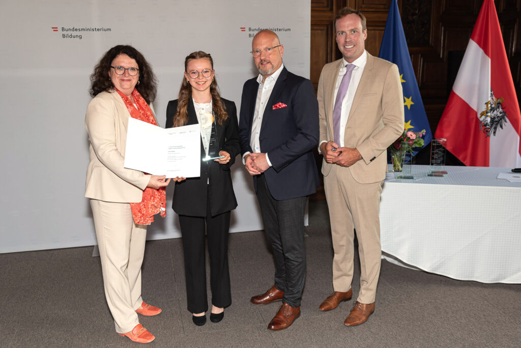 Besonders herausragend war dabei Leistung von Elena Walder aus Außervillgraten. Sie war die beste Teilnehmerin aus Tirol und schaffte bundesweit den sensationellen 2. Platz. Am Mittwoch, 17. 09. 2025 erhielt sie persönlich in Wien die Urkunde. Das junge Computer-Talent konnte 99 % der Aufgaben korrekt lösen. Dieses hohe Niveau brachte ihr große Anerkennung von Seiten des Bildungsministeriums ein. „In Zeiten der Künstlichen Intelligenz sind diese Fähigkeiten mit dem PC umzugehen wichtiger denn je. Sie ermöglichen einen viel bewussteren Umgang mit den neuen Technologien!“ So lautete der einhellige Tenor. [Mag. Werner Gatterer]