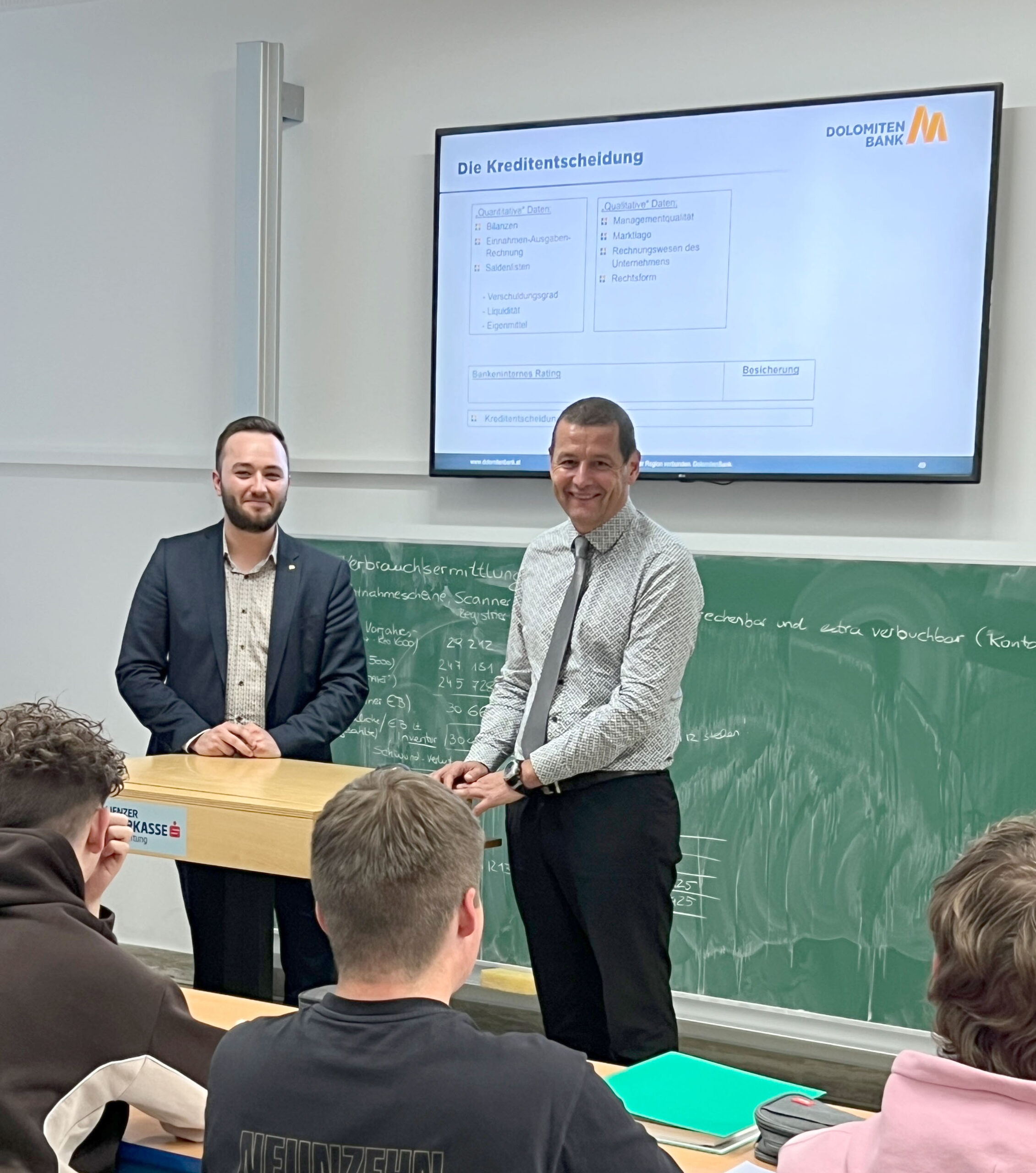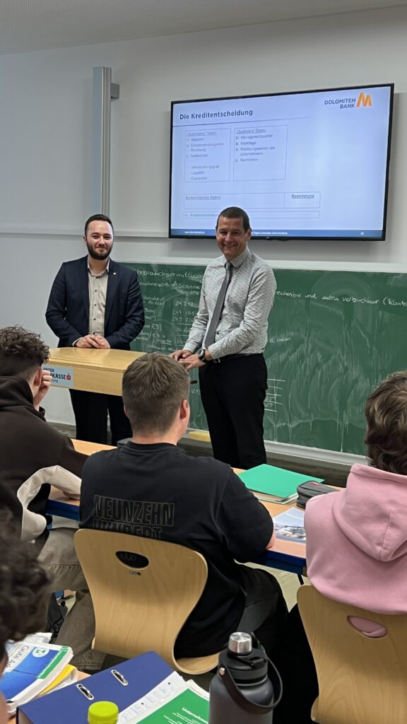Besonders hervorgehoben wurden die Stärken der Bank bei der Kreditvergabe für regionale Unternehmen. Die Dolomitenbank punktet mit individueller Beratung, maßgeschneiderten Finanzierungslösungen und einem tiefen Verständnis für die Bedürfnisse von Jungunternehmern. Die Vortragenden erläuterten anschaulich den Ablauf eines Kreditgeschäftes von der Antragstellung über die Bonitätsprüfung bis zur Vertragsunterzeichnung.