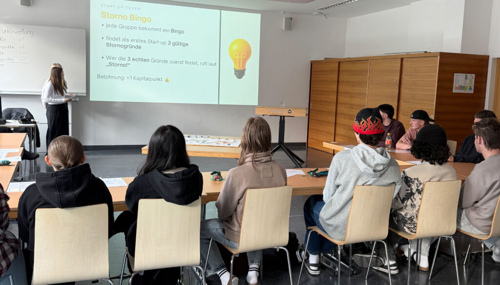 Am 16.12. spielte die Diplomarbeitsgruppe StartUp Fever (Nina, Vanessa, Valerie, Leonie & Anna) gemeinsam mit ihrer Betreuungslehrerin Prof. Unterasinger mit der 2CK ihr selbst entwickeltes Wirtschaftsspiel. Ziel des Spiels war es, wirtschaftliche Zusammenhänge praxisnah und interaktiv zu vermitteln. Die Schülerinnen und Schüler hatten dabei die Möglichkeit, in Teams eigene StartUps zu gründen, strategische Entscheidungen zu treffen und sich mit unternehmerischem Handeln auseinanderzusetzen.